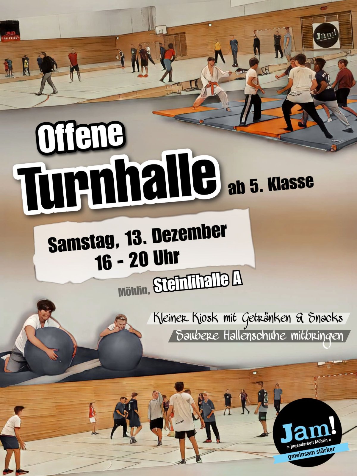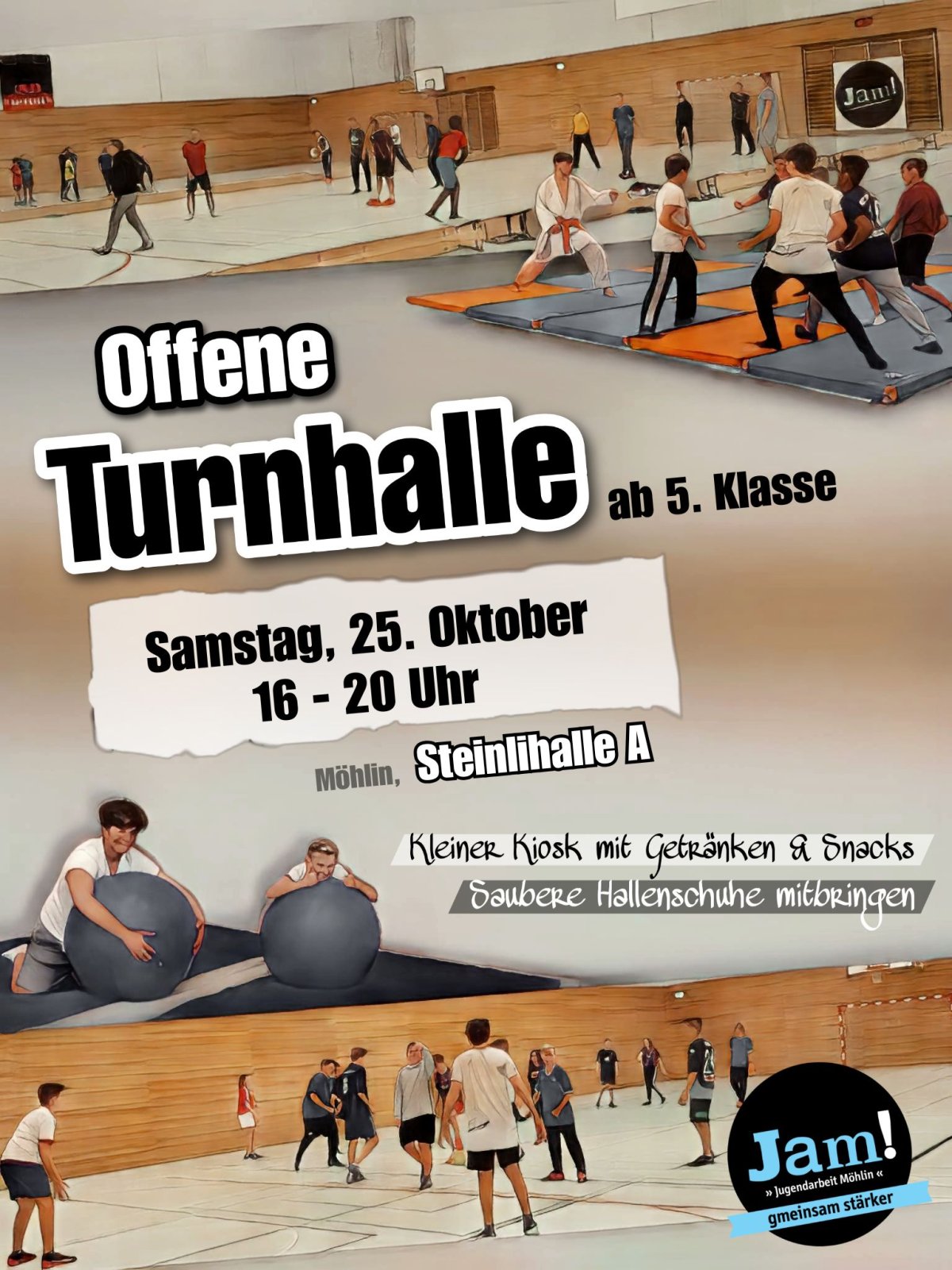 Packt euch was zum Trinken und saubere Hallenschuhe ein und kommt in der Steinlihalle A vorbei - von 16 bis 20 Uhr dürft ihr euch wieder ganz ohne Notendruck beim Ballspiel oder an den Geräten sportlich auspowern.