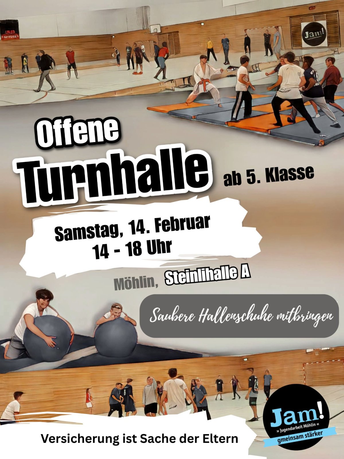 Die Turnhalle ist für alle ab der 5. Klasse (bzw. ab 11 Jahren) geöffnet.